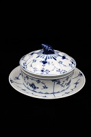 Bing & Grøndahl Blåmalet / Musselmalet smørkrukke på fast underfad.