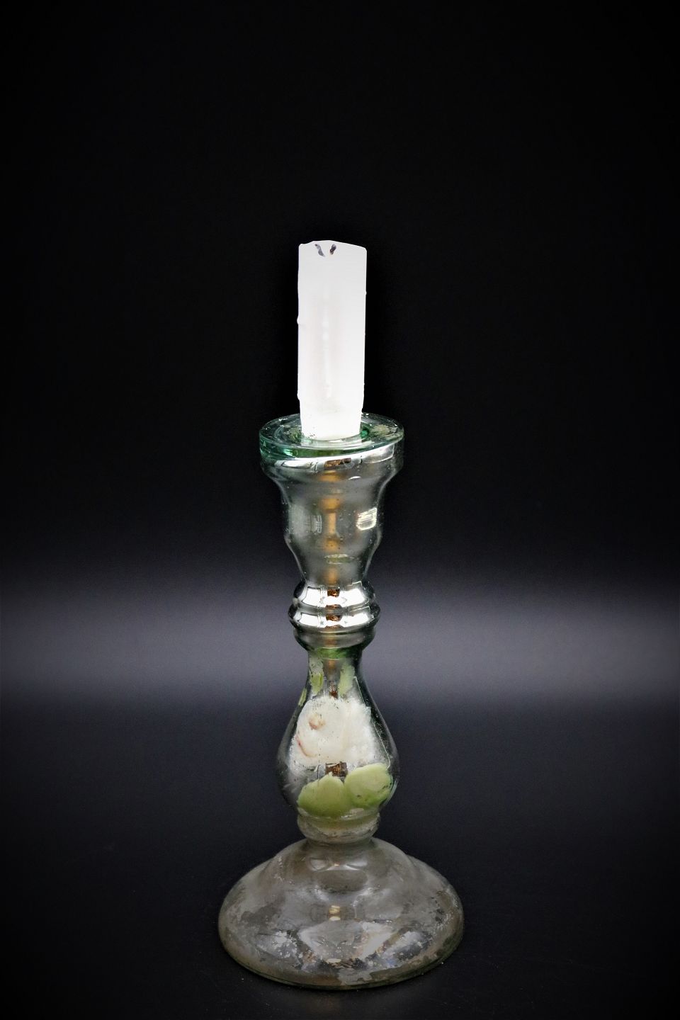 Candlestick in Mercury glass from the 1800 century with fine old patina. Height: 19cm.