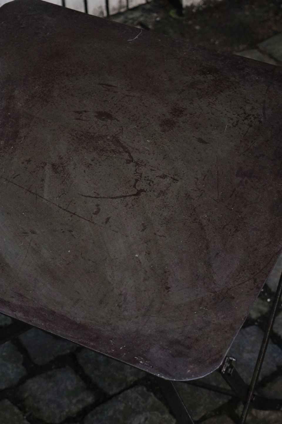 Gammelt fransk café bord i afpudset jern med en super flot mørk patina.