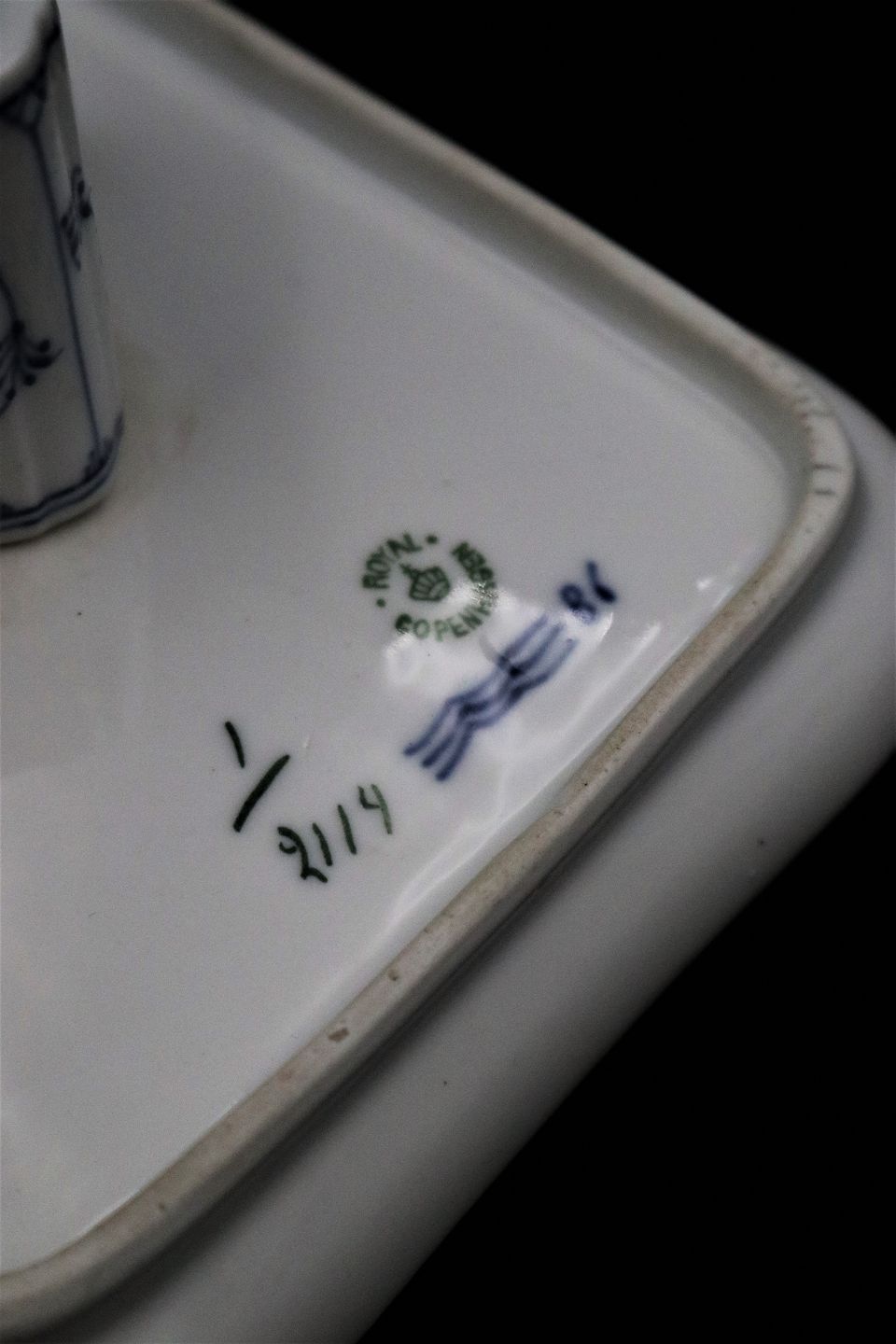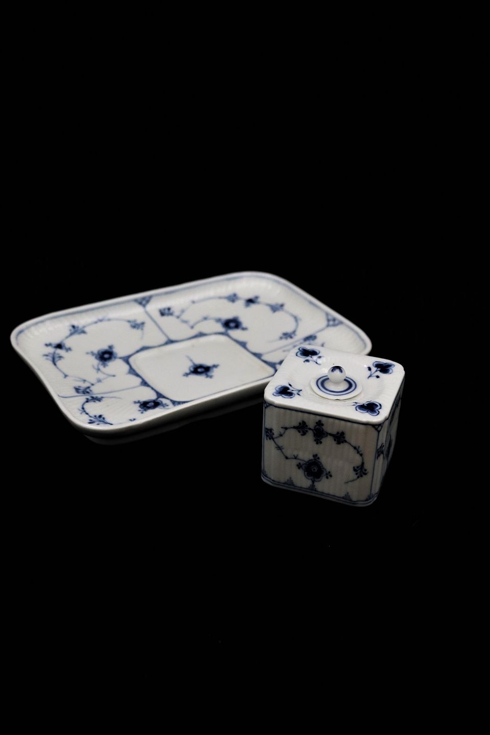 Antikt Royal Copenhagen Musselmalet Riflet skrivesæt til blæk på fad.