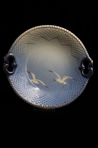 Bing & Grøndahl kagefad med håndtag og guld dekoration i mågestellet. B&G#101...