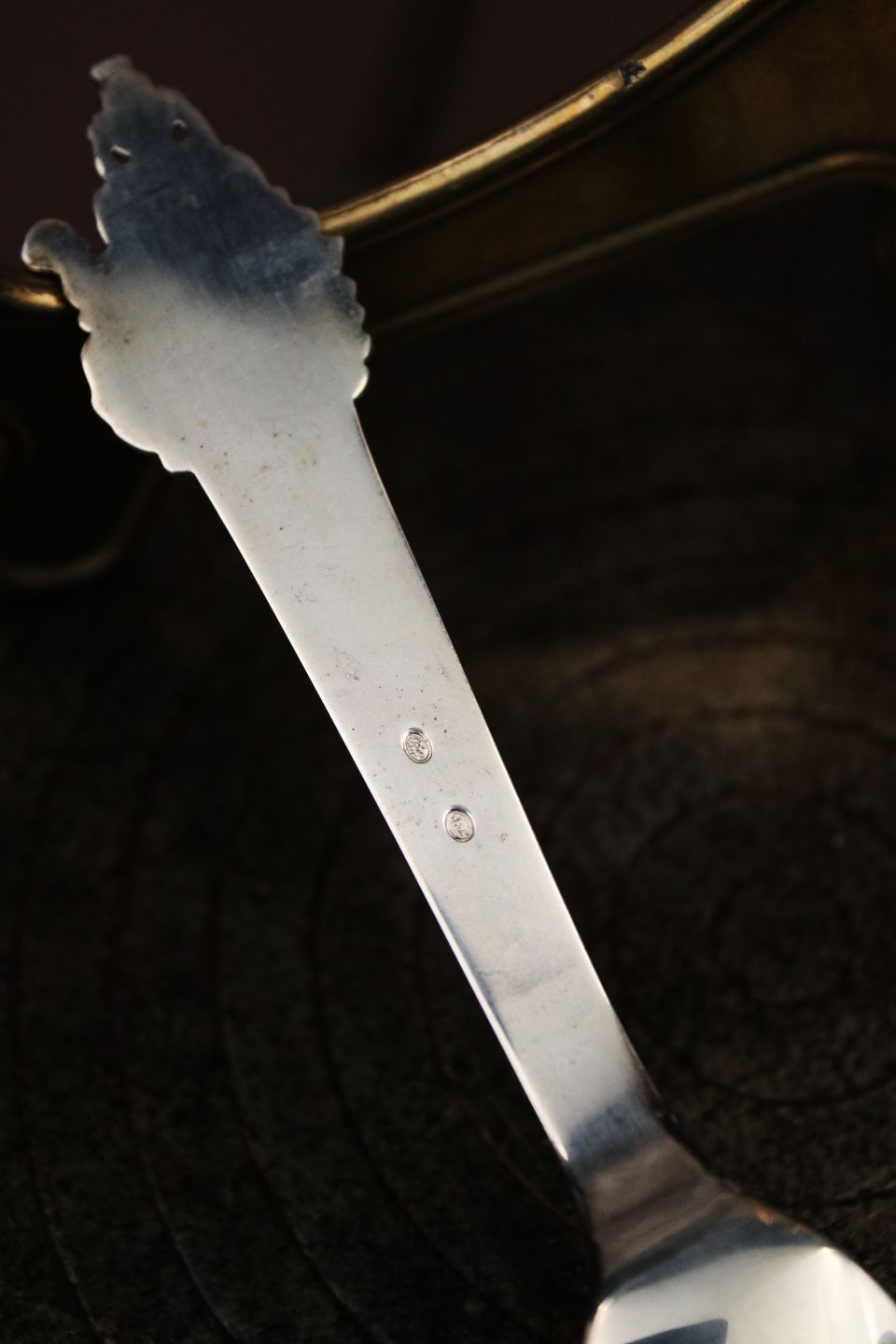 Old children's fork in silver with motif from H. C. Andersen's fairy tale "The Princess on the Pea"...