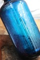 Dekorativ , gammel fransk glas sifon i blå farve med graveret skrift på siden af sifonen. H: 28cm.
