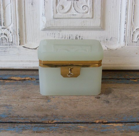 Lyseblå sukkerskål med messing montering 19. årh.