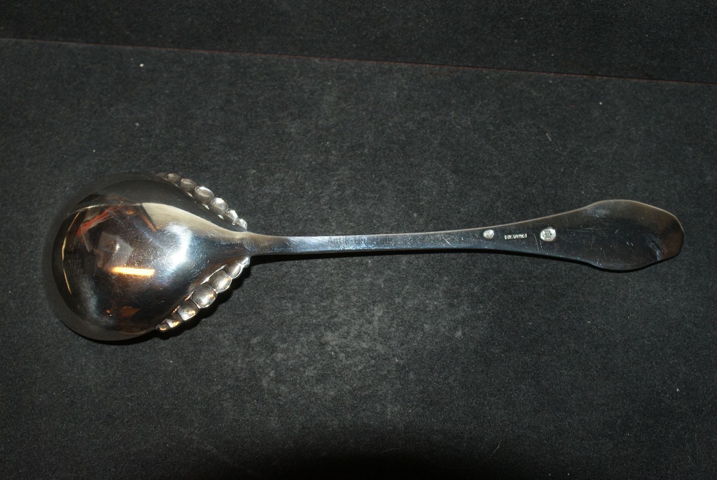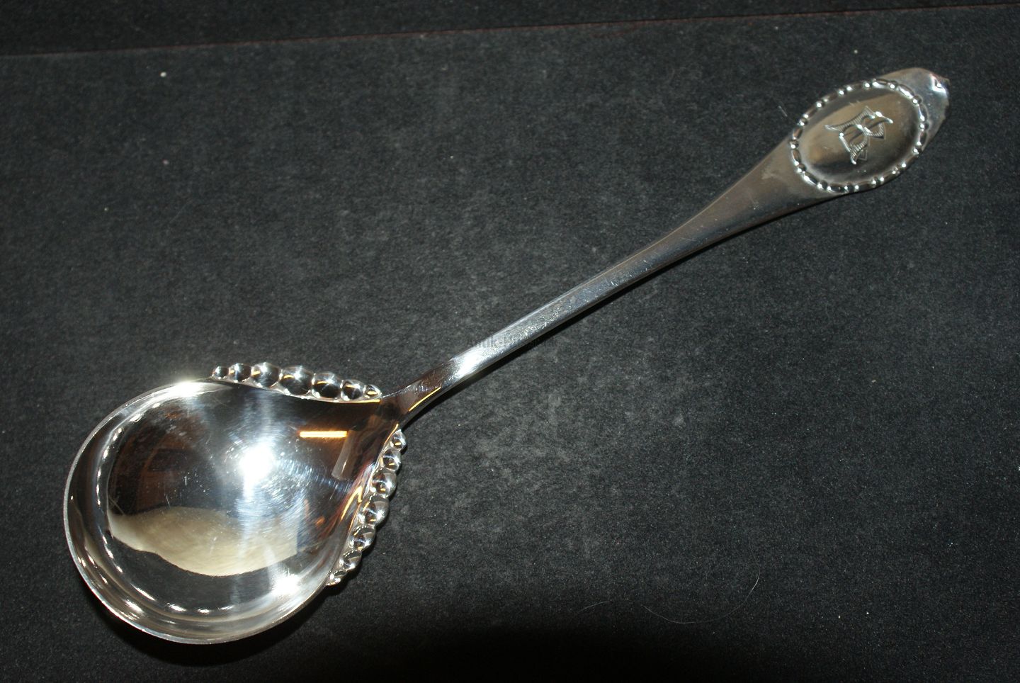 Description: Serving spoon m / Edge Bead Medallion Silver with engraved initials