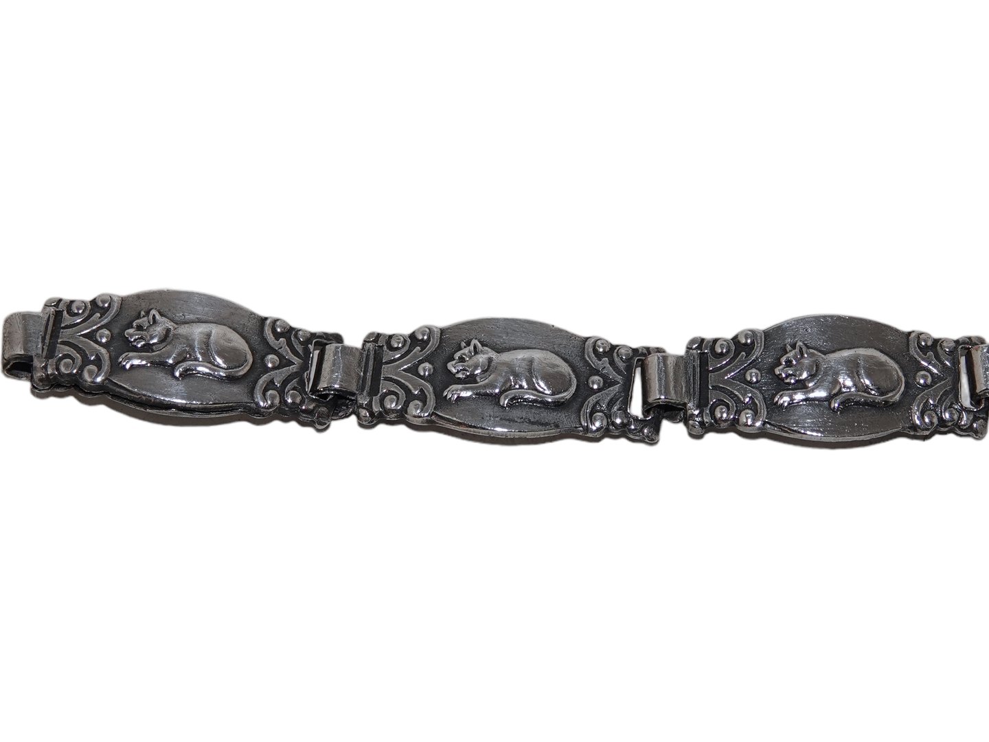 Description: Danish silver plate, small children bracelet with cats.