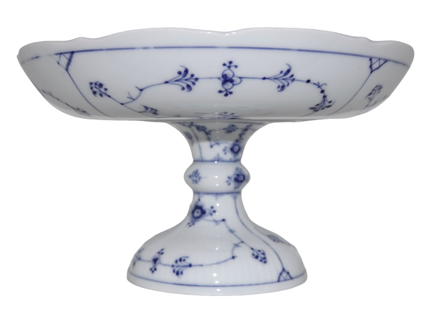 Description: Royal Copenhagen Blue Fluted Plain, Cake bowl on high stand.
