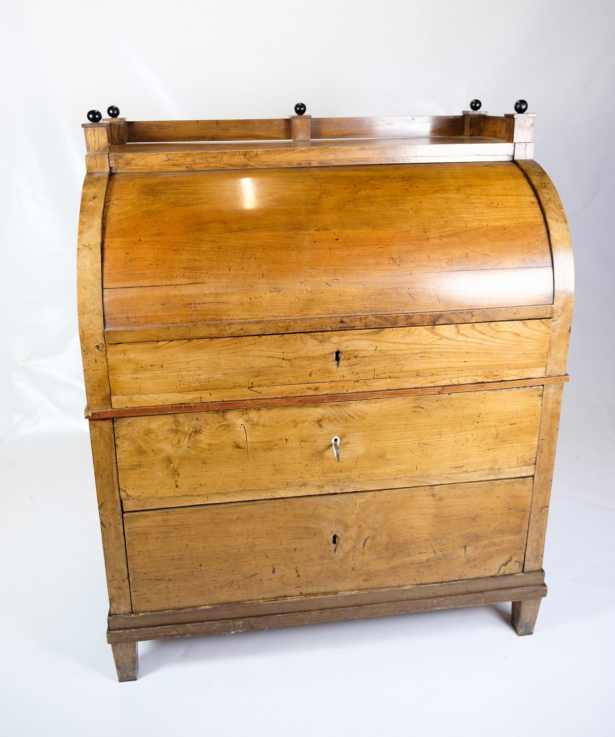 Description: This late empire chatol is a fine representation of furniture style from the 1840s. Made of elm wood and adorned with intarsia details, it exudes both noble craftsmanship and historic elegance.