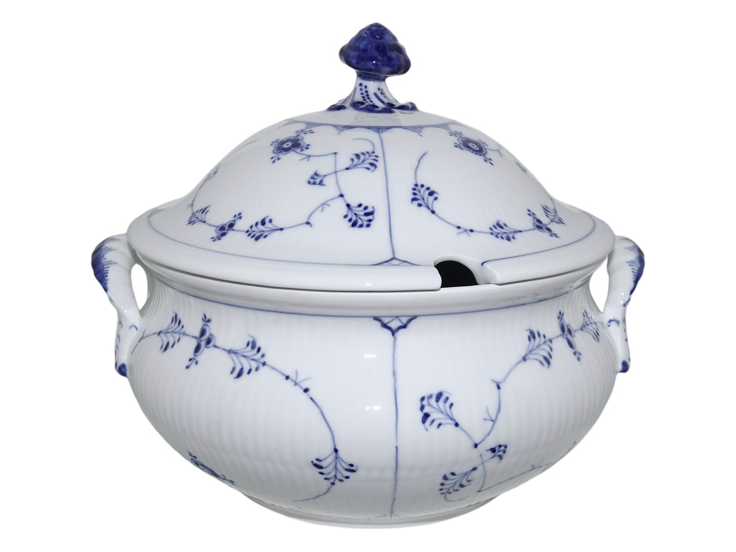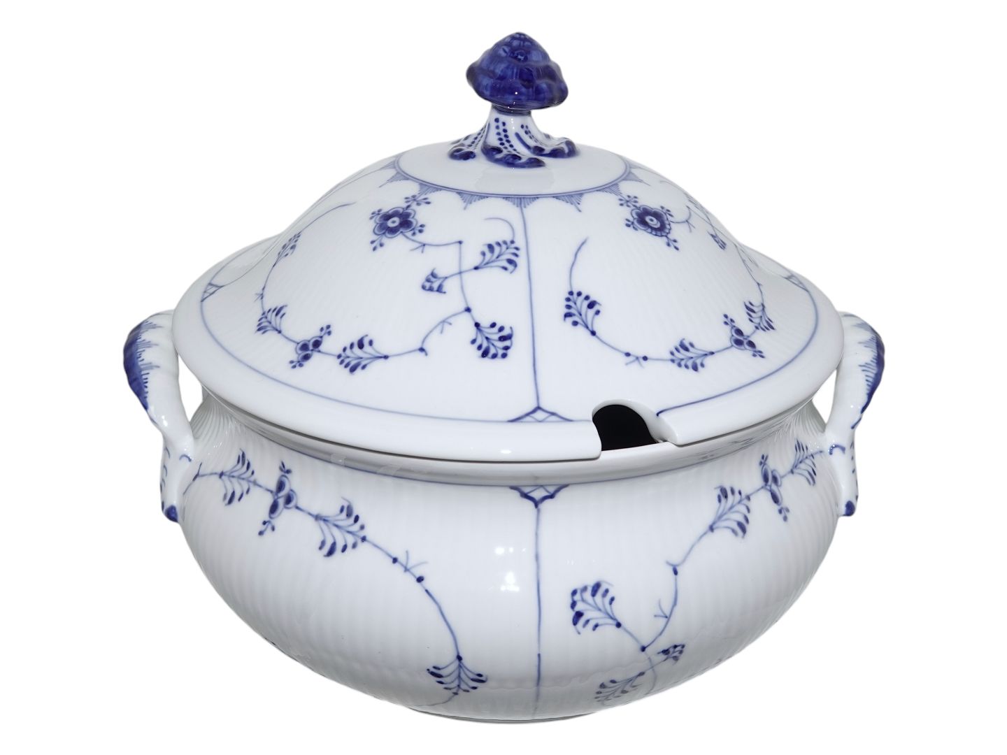 Description: Royal Copenhagen Blue Fluted Plain, large, round soup tureen.