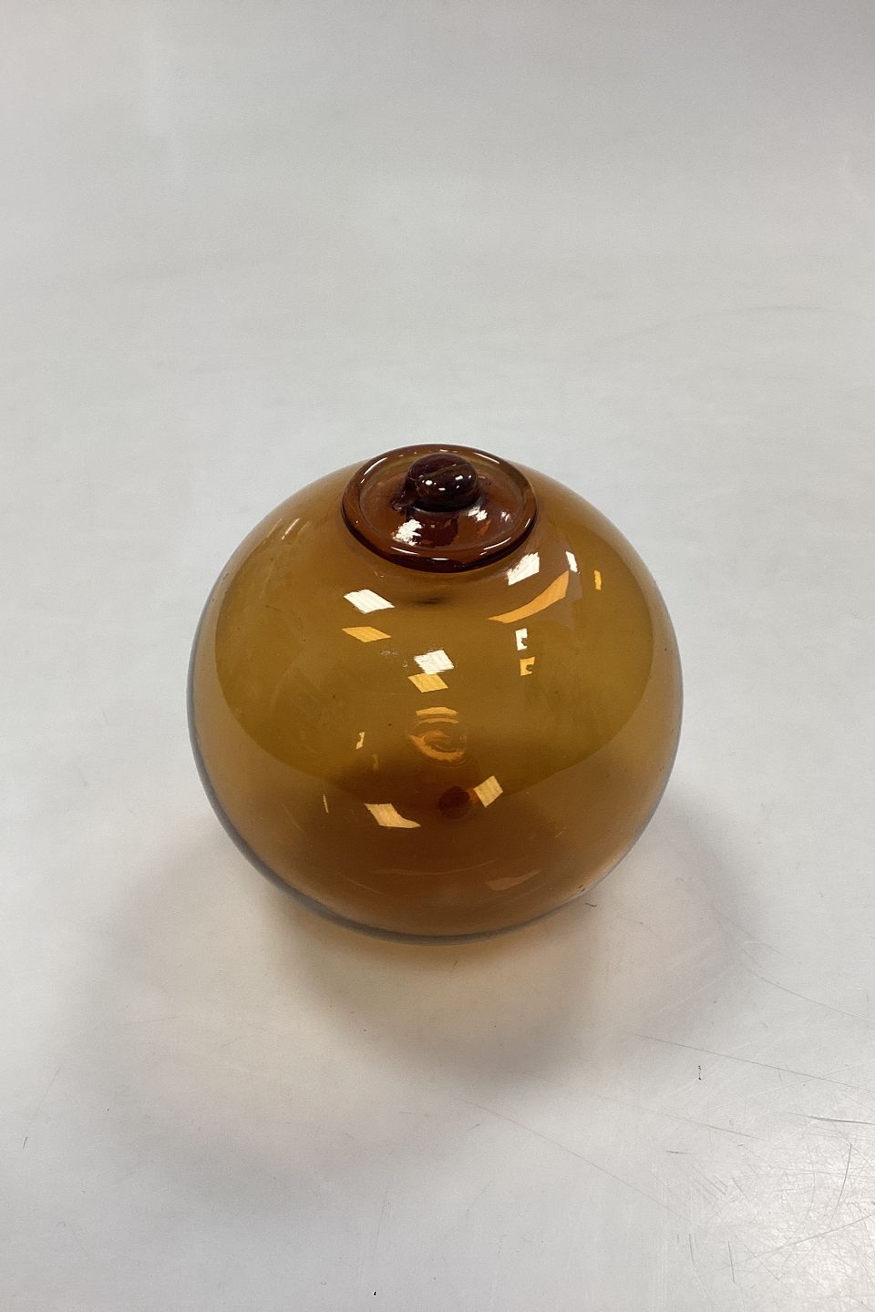 Description: Holmegaard / Kastrup / Fyens Glass Works Decorative Ball . Also called fish balls or glass floats. Designed by Michael Bang in 1967. Color: Amber. Hole for hanging.