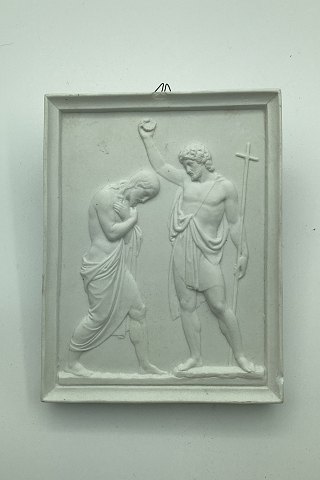 Description: Royal Copenhagen Bisque Plate Baptisment of Christ No 113. Copy by O.H.B. Olrik from 1848 after Thorvaldsens original from Rom 1805-07. Measures 12 x 16cm . (4.72 x 6.29 inch) Three chip: Top middle. Bottom right. On the backside.