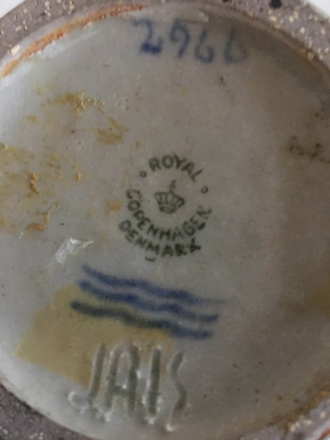 Royal Copenhagen Jais Nielsen Stentøjsvase No 2966 i speciel grøn glasur