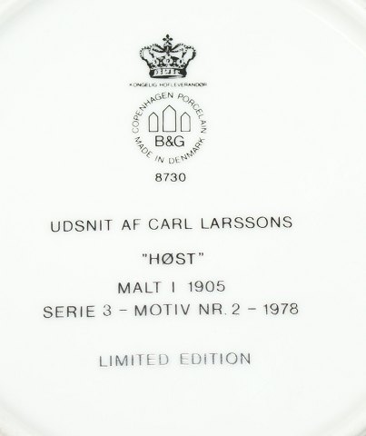 Beskrivelse: Bing & Grøndahl, Carl Larsson platte
