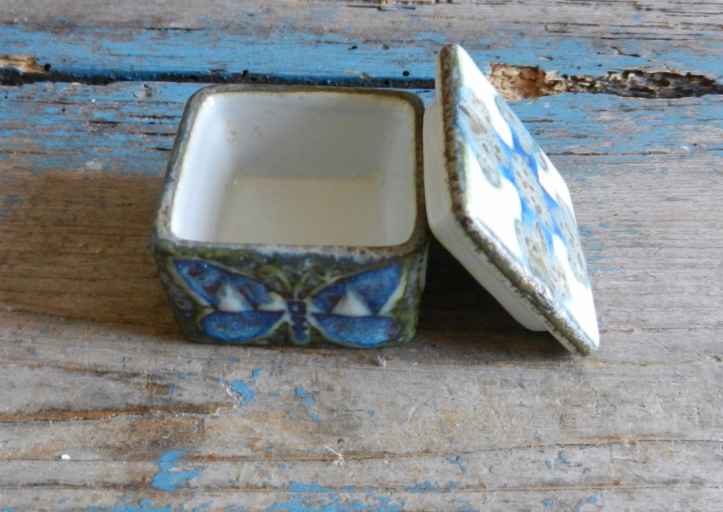 Royal Copenhagen, Aluminia, Tenera lille låg skrin med sommerfugle. No 717/3266