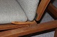 Description: Lounge chair with stool designed by Borge Mogensen model 2254 sled chair tall model in light wool with loose cushions. Oak frame is in good condition. Dimensions, High 96 cm, W 66 cm, D 96th Seat height 36 cm