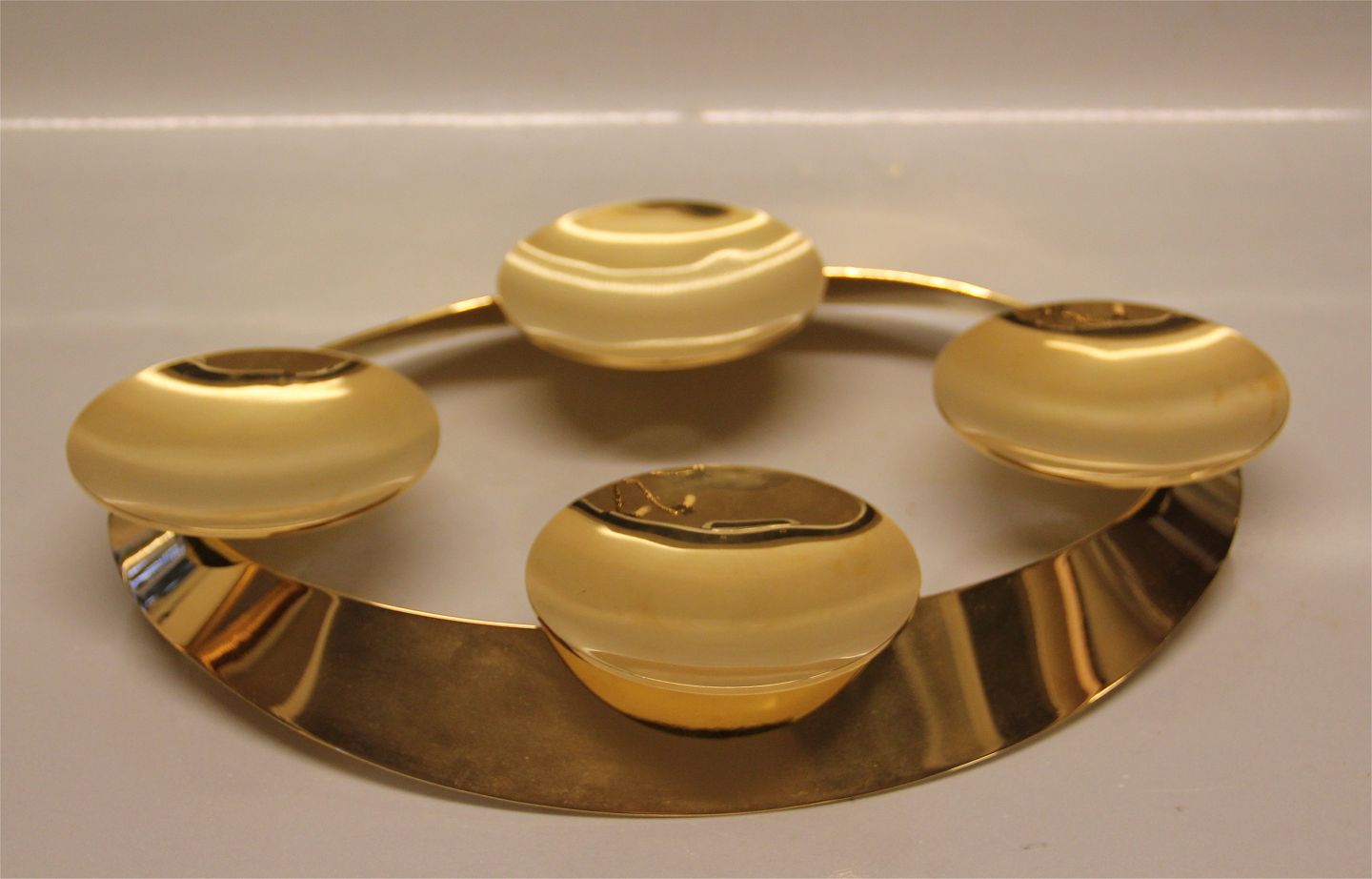 Beskrivelse: Georg Jensen Advendt stage forgyldt 32 cm Oval I fin og hel stande Golden Christmas adventskrans