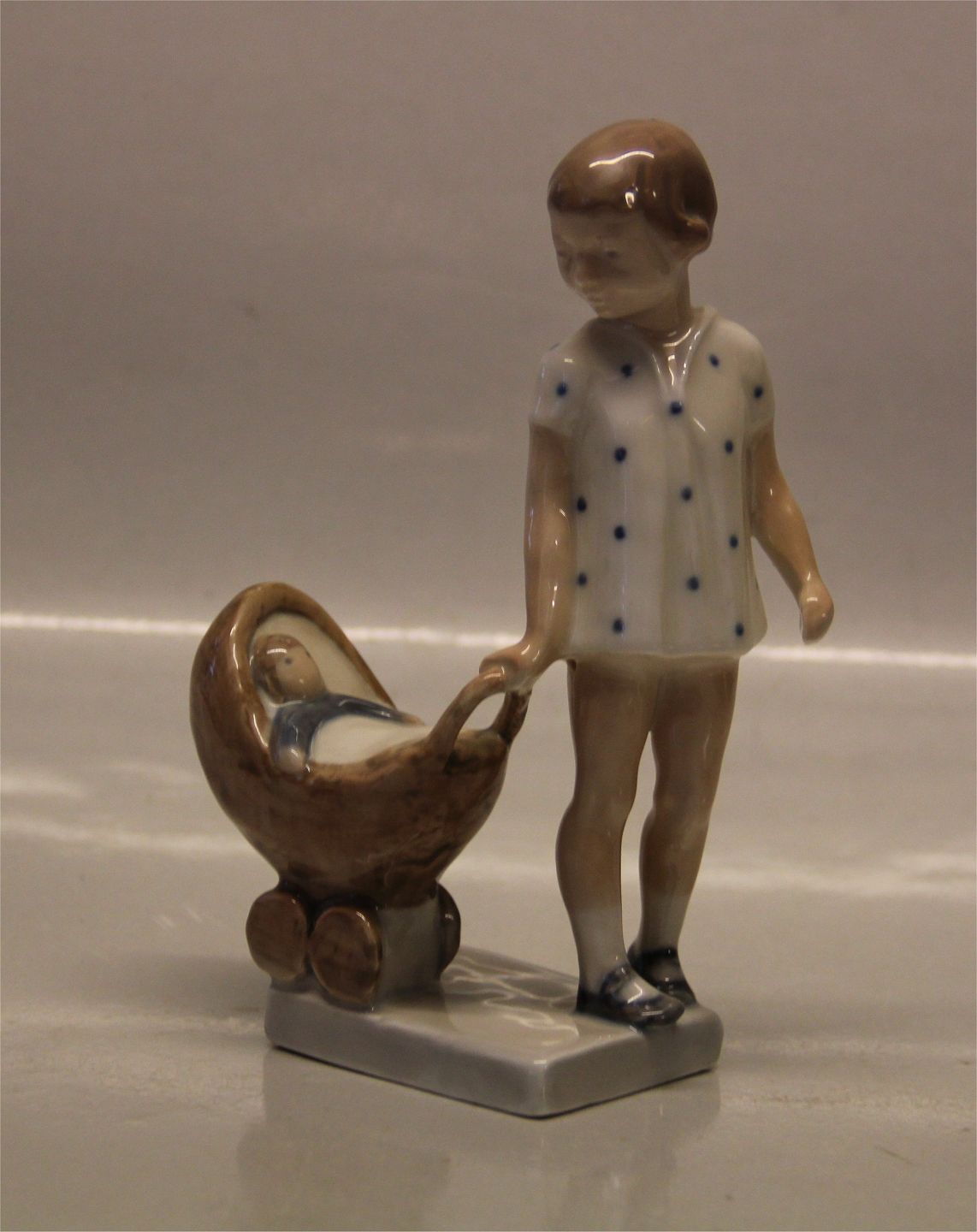 Description: Royal Copenhagen 5194 RC Girl with pram 16 cm Hanne Varming. In mint and nice condition