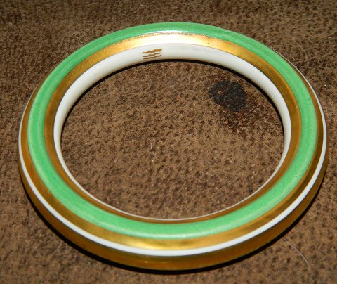 Description: Royal Copenhagen Bracelet in porcelain with hand painted decoration. The factory's logo - Three Waves - painted in gold. Original gift box from Royal Copenhagen will follow. All parts in perfect condition. Bracelet dimensions inside: 6½ cm Outside dimensions: 9 cm.