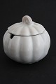 Beskrivelse: Michael Andersen, Bornholm. Marmeladekrukke i hvid mat glasur. Formnr. 4596. Højde 12 cm. Diameter 12 cm. Flot stand udvendig. Krakeleringer indvendig. Pris: SOLGT