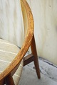 Beskrivelse: 10 stk. Harry Østergaard stole i teaktræ med stofbetrukket sæde. En lille fejl ved ryglænet på en enkelt stol. Pæn stand.