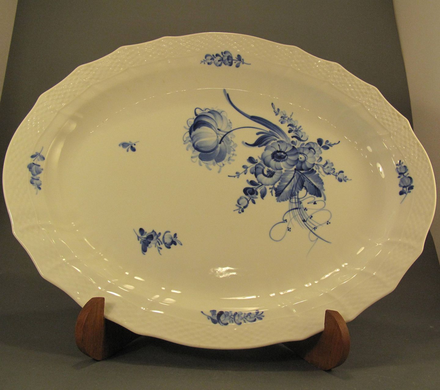 Royal Copenhagen, blå blomst Svejfet ovalt fad 44 cm
