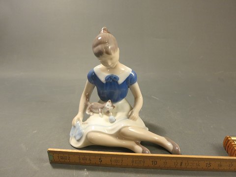 Bing & Grøndahl figur, pige med kat, nr. 2329
