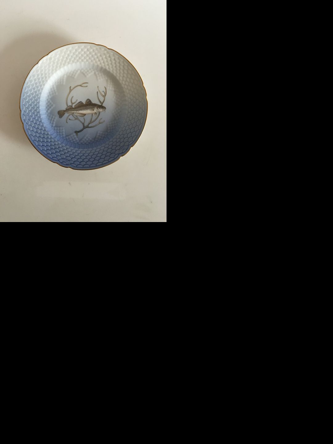 Sjælden Bing & Grøndahl Måge med Guld Fiske Middagstallerken No 25 Torsk