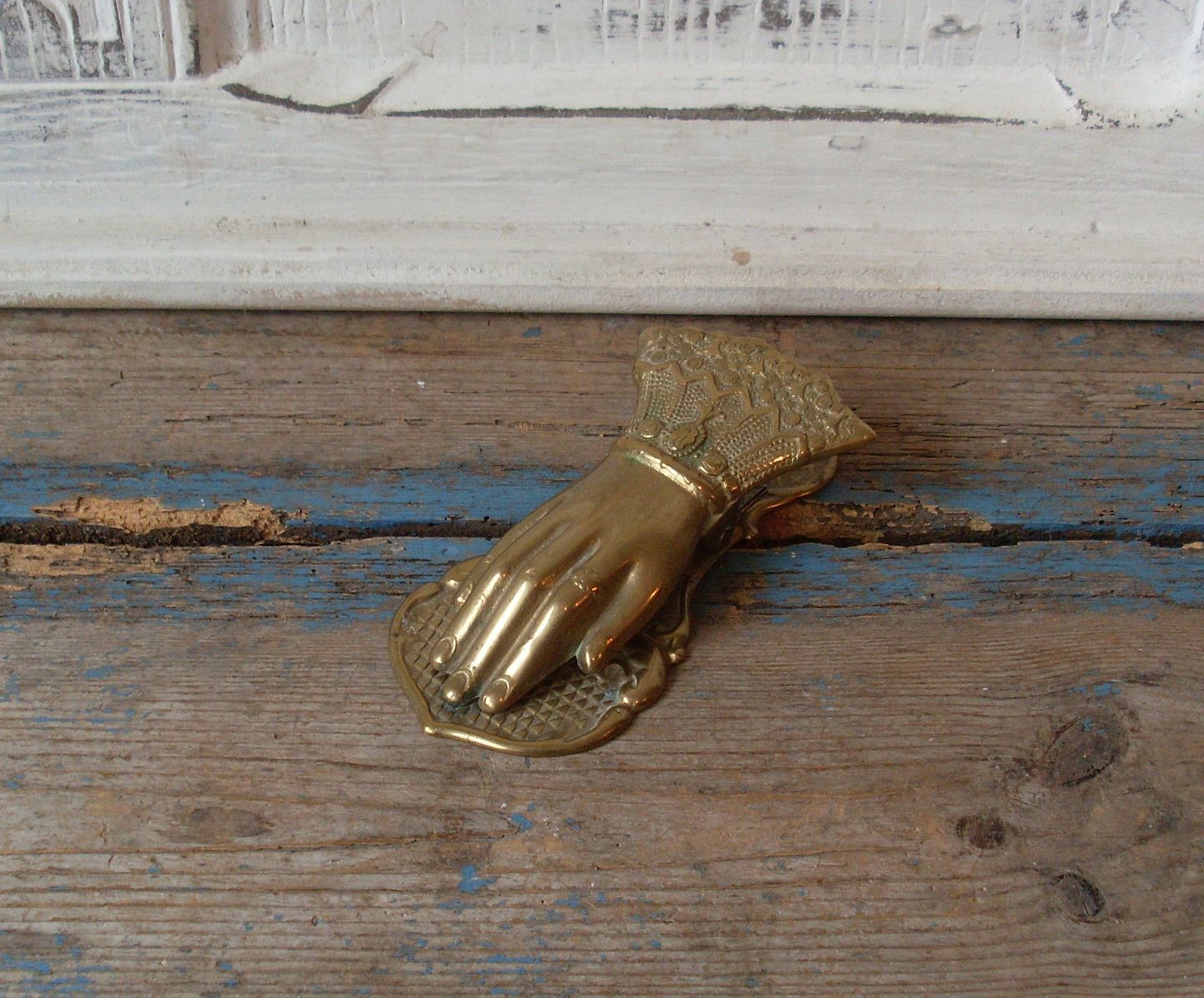 Stor messing klemme i form af hånd.