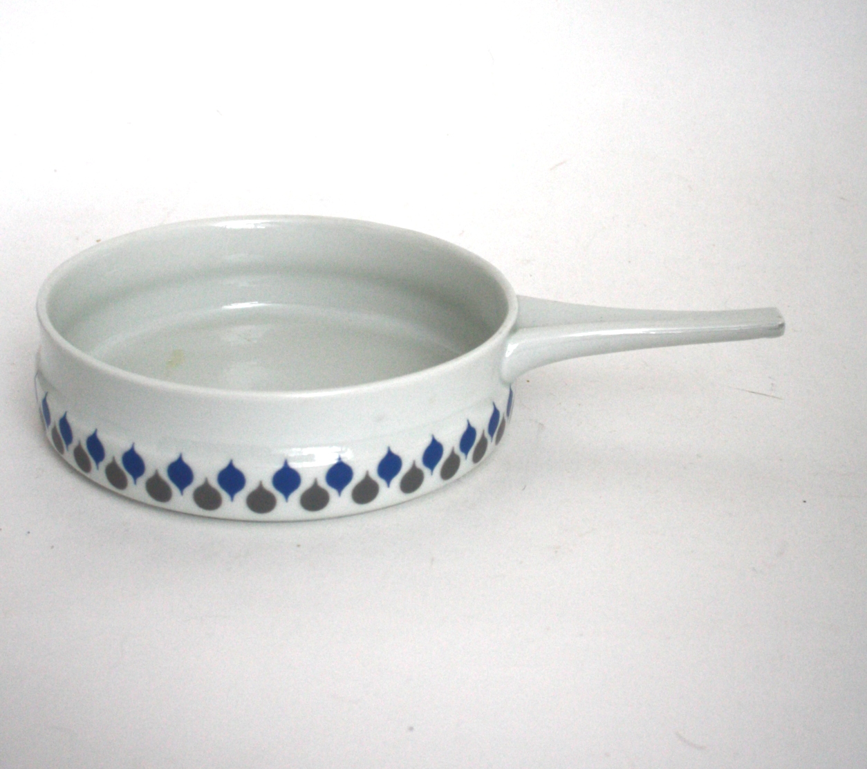 Beskrivelse: Lyngby porcelænsfabrik, Danild 66 designet af Axel Brüel. Pande med hank. Højde 5,5 cm. Diameter 19,5 cm. Perfekt stand. Pris: SOLGT
