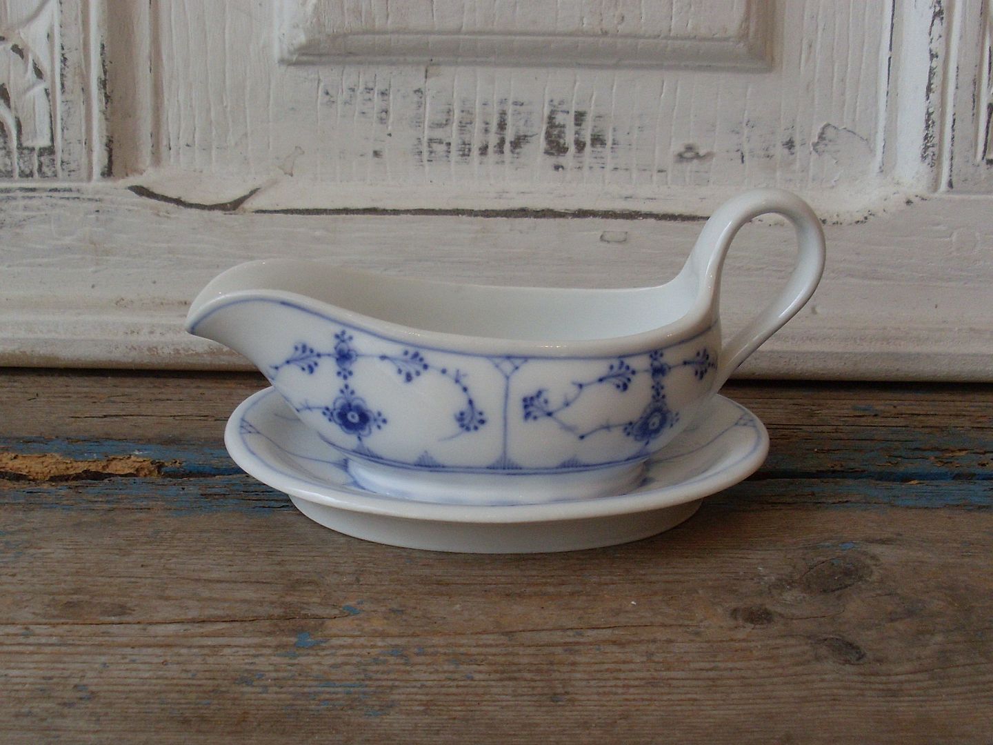 Royal Copenhagen Musselmalet riflet smørkande på fast fod no. 2061