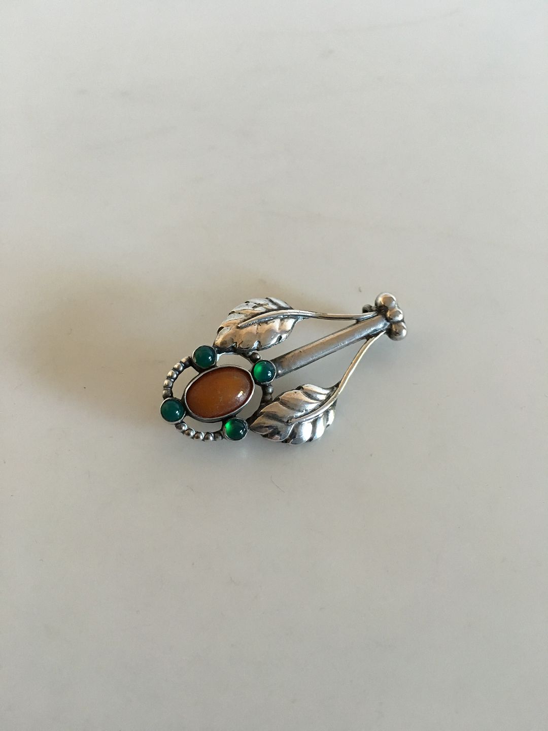 Georg Jensen Sølv Broche med Rav og Agater No 7
