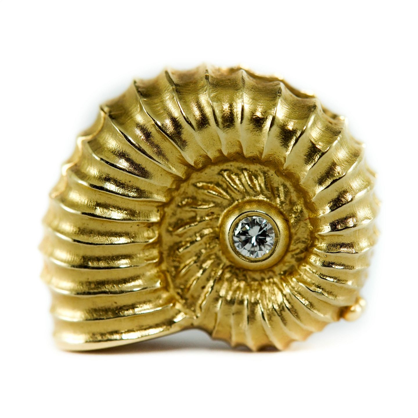 A jewellery clasp in 14k gold with a saphire and a diamond