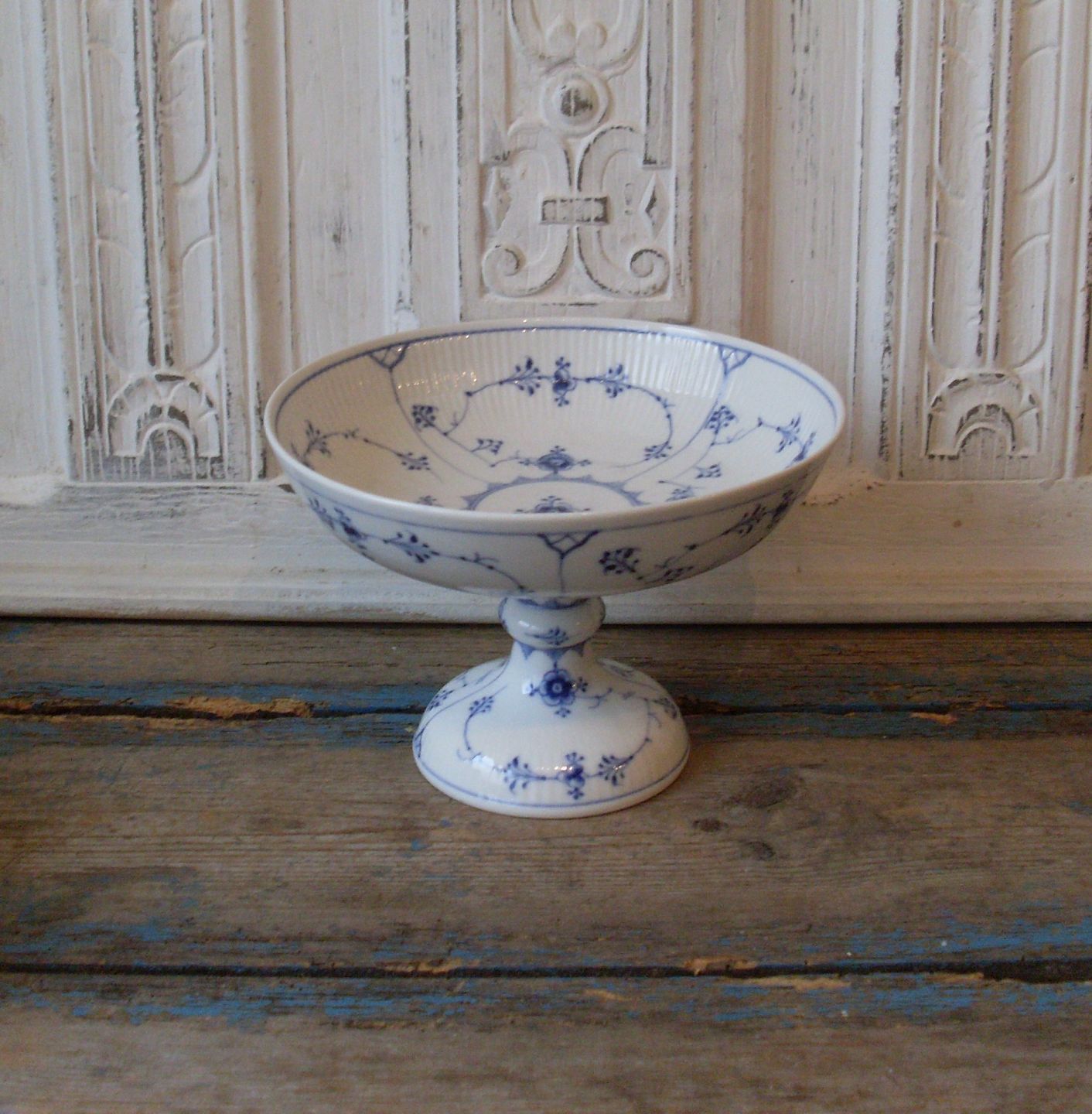 Royal Copenhagen Musselmalet riflet salatfad på høj fod no. 22