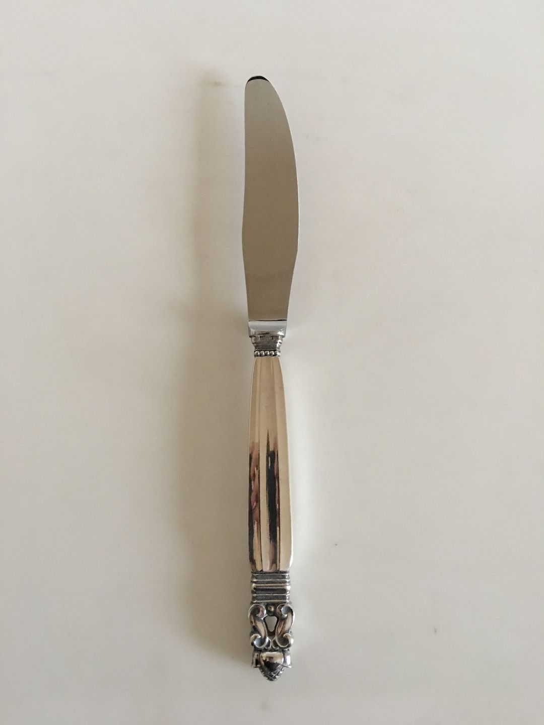 Description: Georg Jensen Sterling Silver Dinner Knife with Long Handle No 017. 22..7 cm (9")