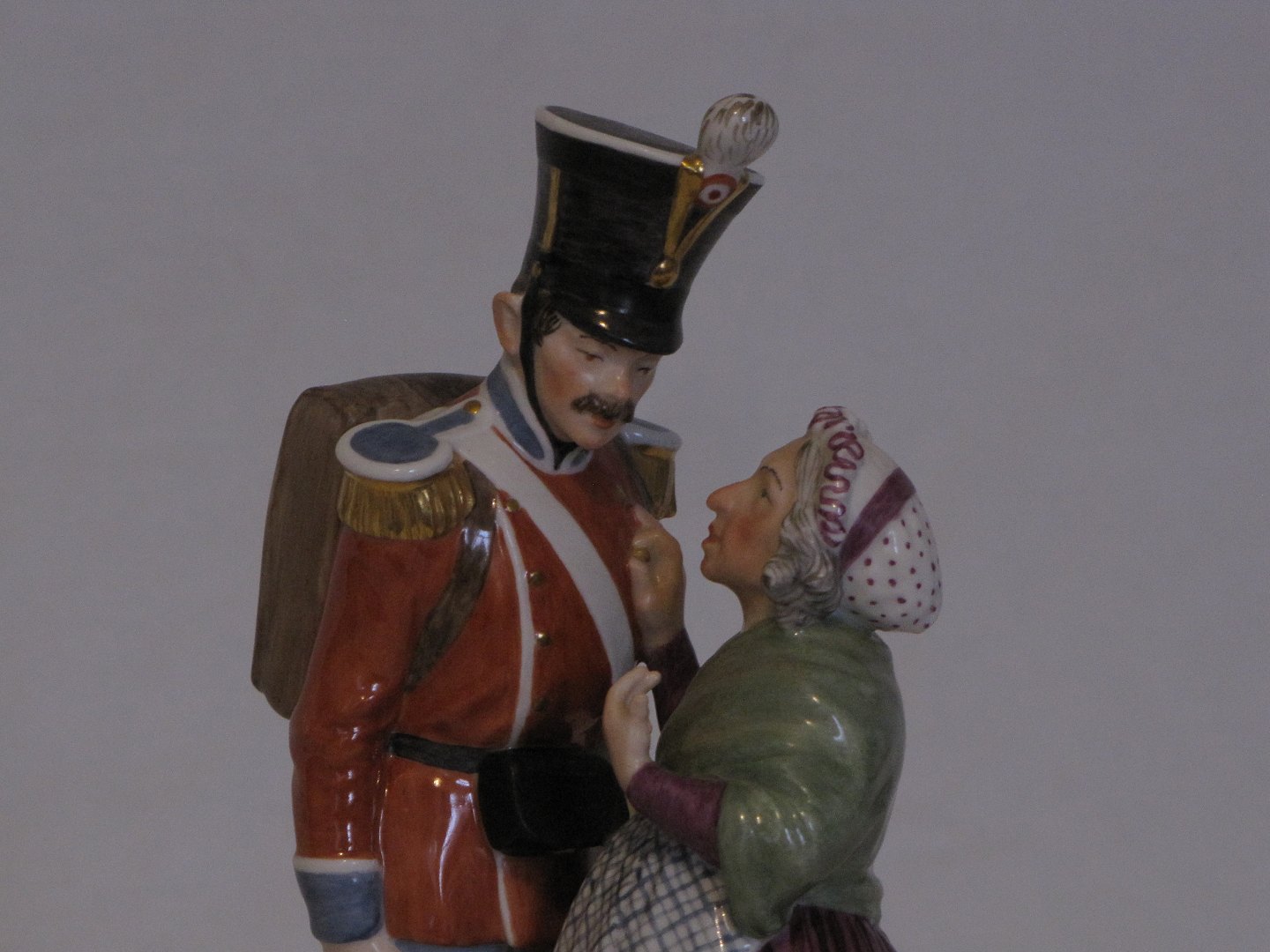 Beskrivelse: Figur nr. 1112 Soldaten & Heksen fra H. C. Andersens eventyr Fyrtøjet af Christian Thomsen for Royal Copenhagen, Juliane Marie stempel. Overglasur polykrome dekorationer 1. Sortering