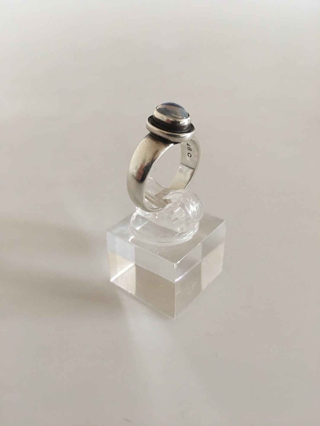 Description: Georg Jensen Sterling Silver Ring No 46C with Clear Stone. From after 1945. Ring Size 51 / US 5 1/2. Weighs 4.8 g / 0.17 oz.