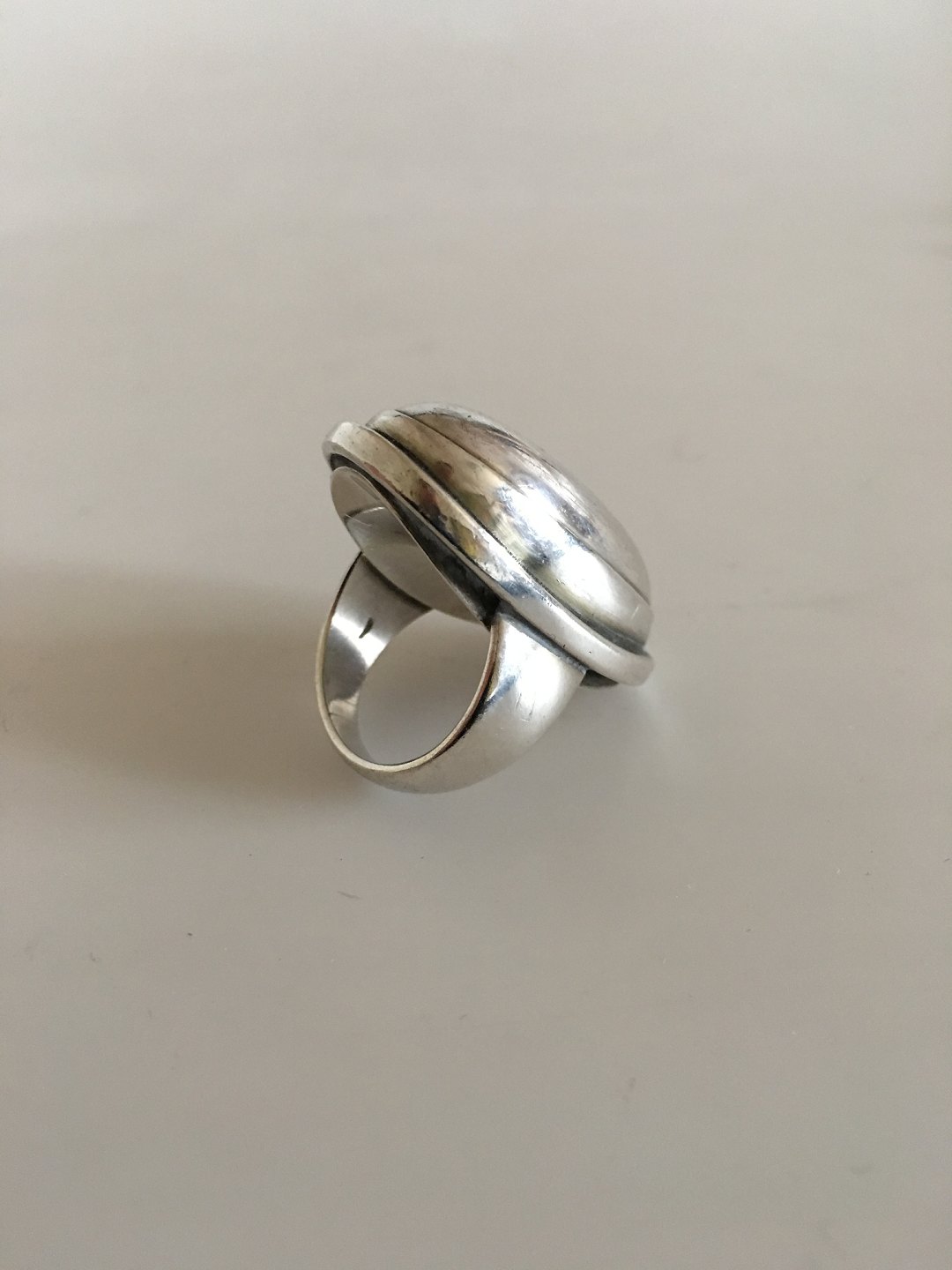Beskrivelse: Georg Jensen Sterling Sølv Ring No 46E med Sølvsten. Ringstørrelse 52. Det ovale sølvstykke måler ca. 3.5 cm. Vejer 18 gram.
