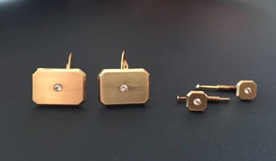 Beskrivelse: Manchetknapper med sten til venstre på billedet, kjoleknapper til højre