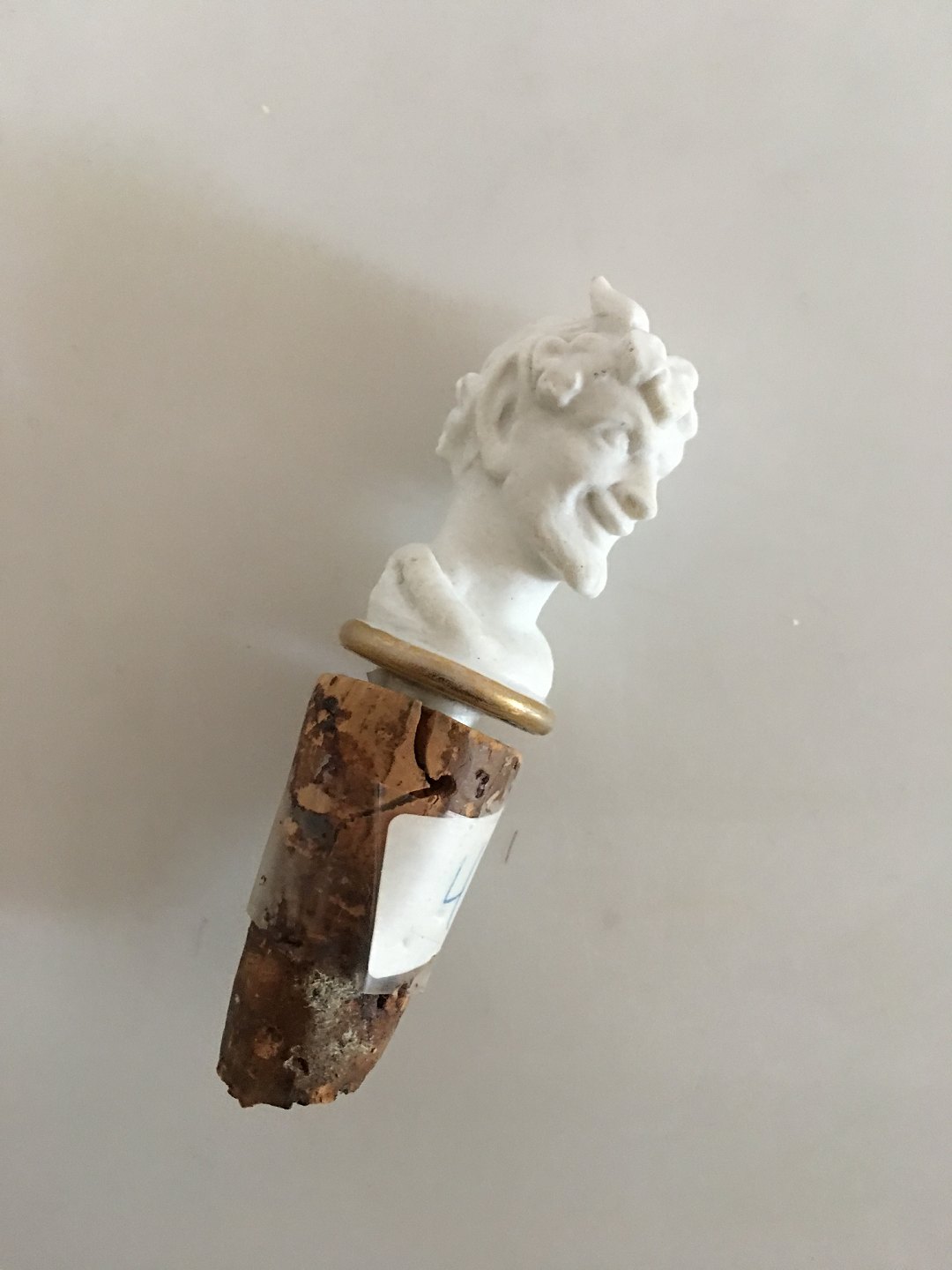 Beskrivelse: Royal Copenhagen Antik Prop i Bisque med motiv af Græsk/Romersk hoved af faun 1820-1850