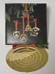 Beskrivelse: Julepynt i forgyldt messing med 24-karat guld fra Georg Jensen. Spiral ophæng til Juleuro med rødt bånd i original æske.