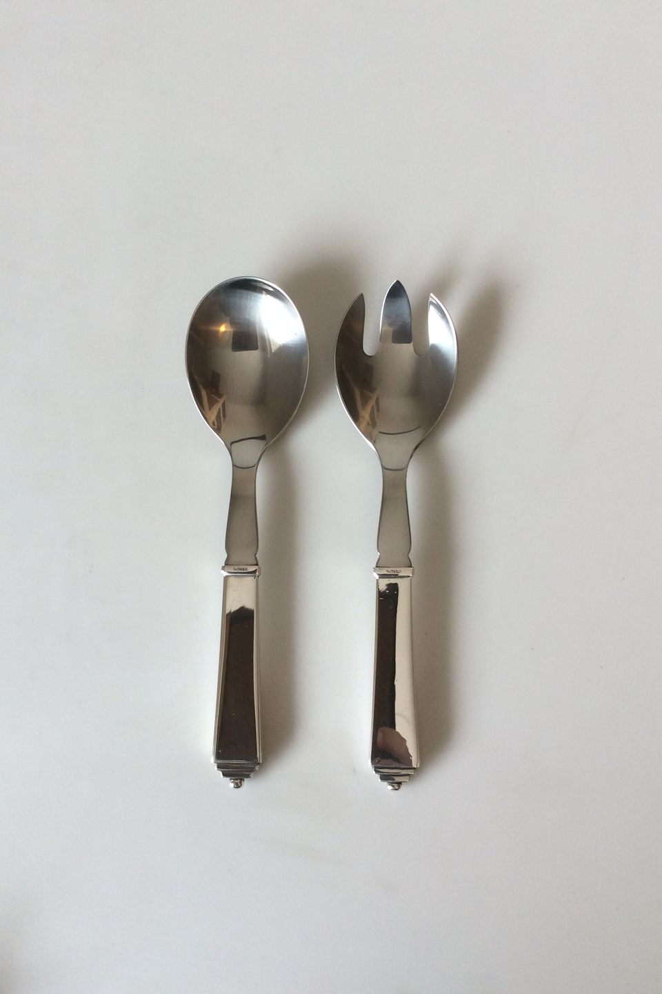 Description: Georg Jensen Pyramid Serving Set, Medium No 133 in Sterling Silver and Stainless Steel. Measures 19 cm / 7 31/64"