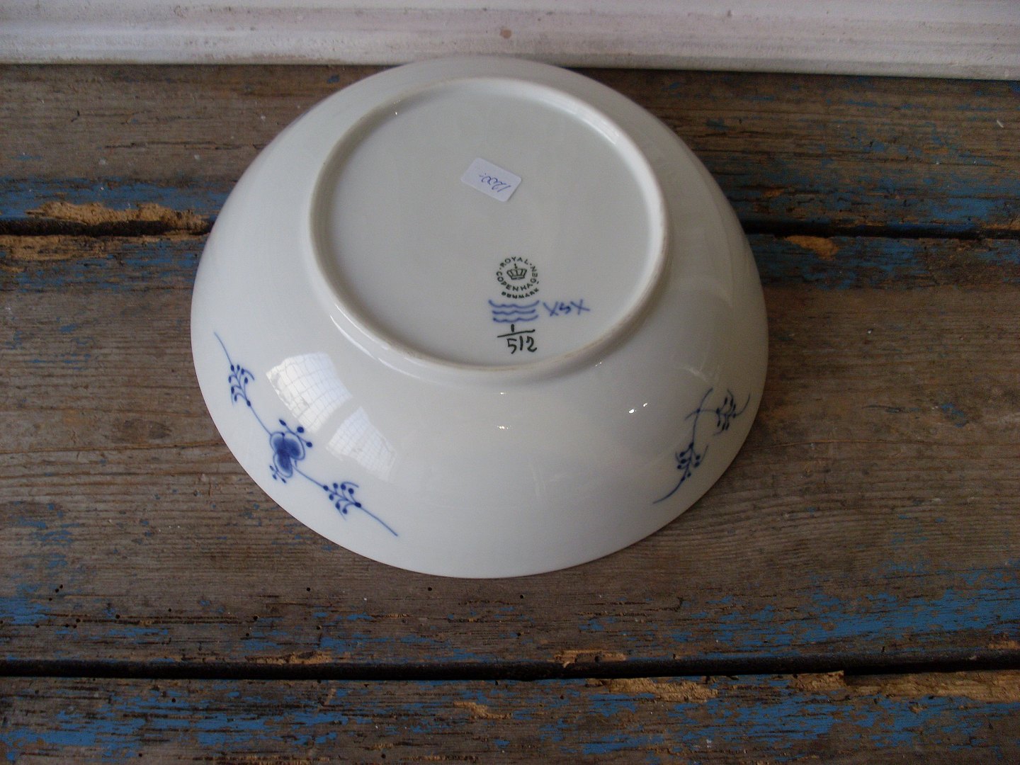 Beskrivelse: Royal Copenhagen Musselmalet halvblonde skål