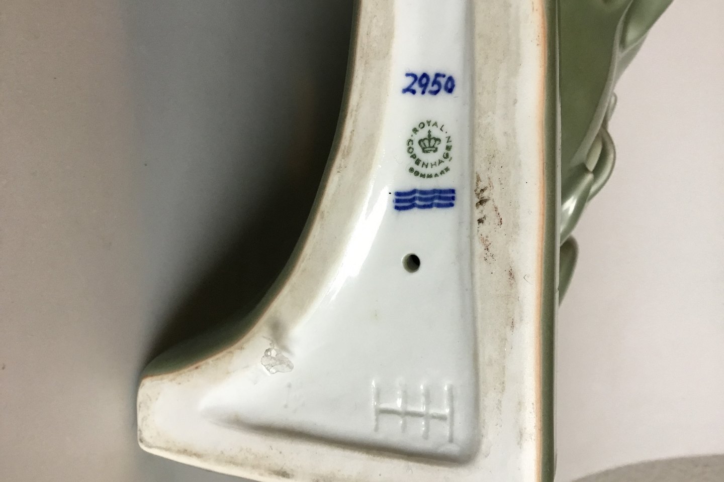 Beskrivelse: Royal Copenhagen Grøn Celadon Maske af Medusa No 2950, Hans Henrik Hansen 1927. Måler 28 cm x 30 cm x 11 cm. Sjælden