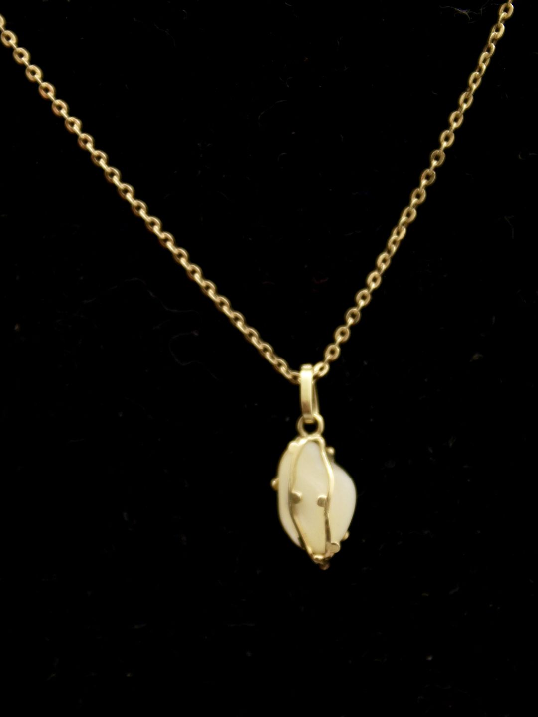 14 karat guld halskæde og vedhæng med perlemor solgt