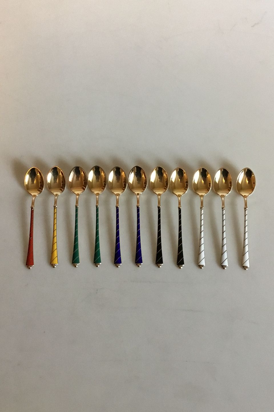 ELA Denmark Set of 11 pcs. Mocca Spoons in Gilted Sterling Silver with Colered Emanel