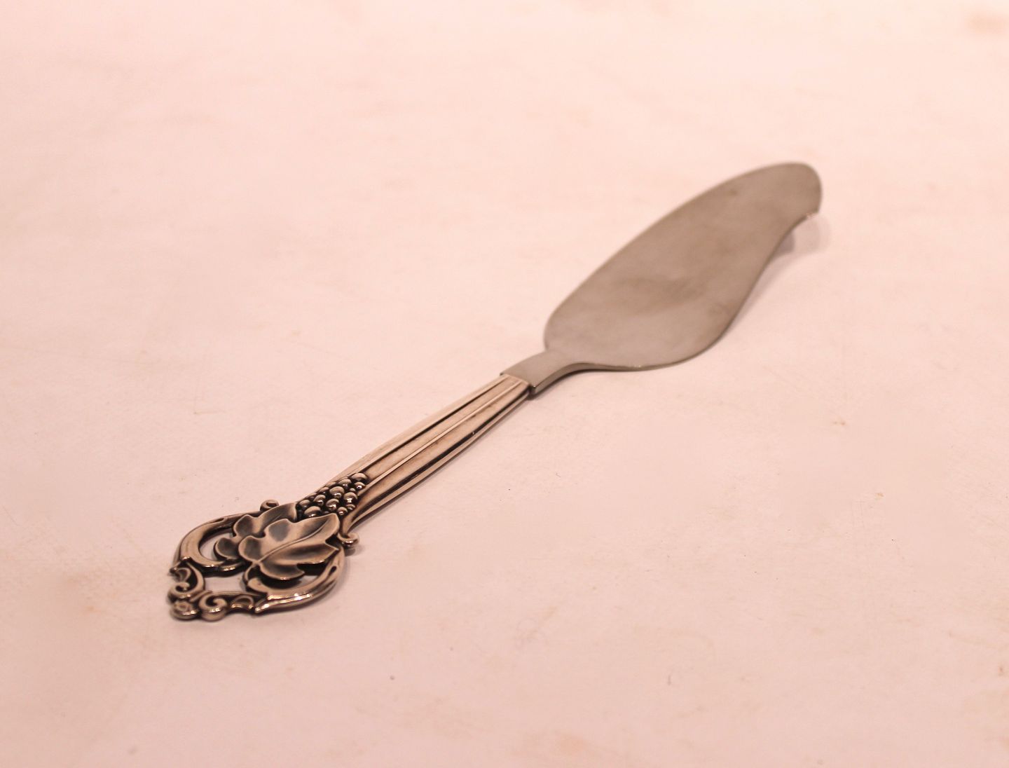 : Kagespade dekoreret med drueklaser af tretårnet sølv.