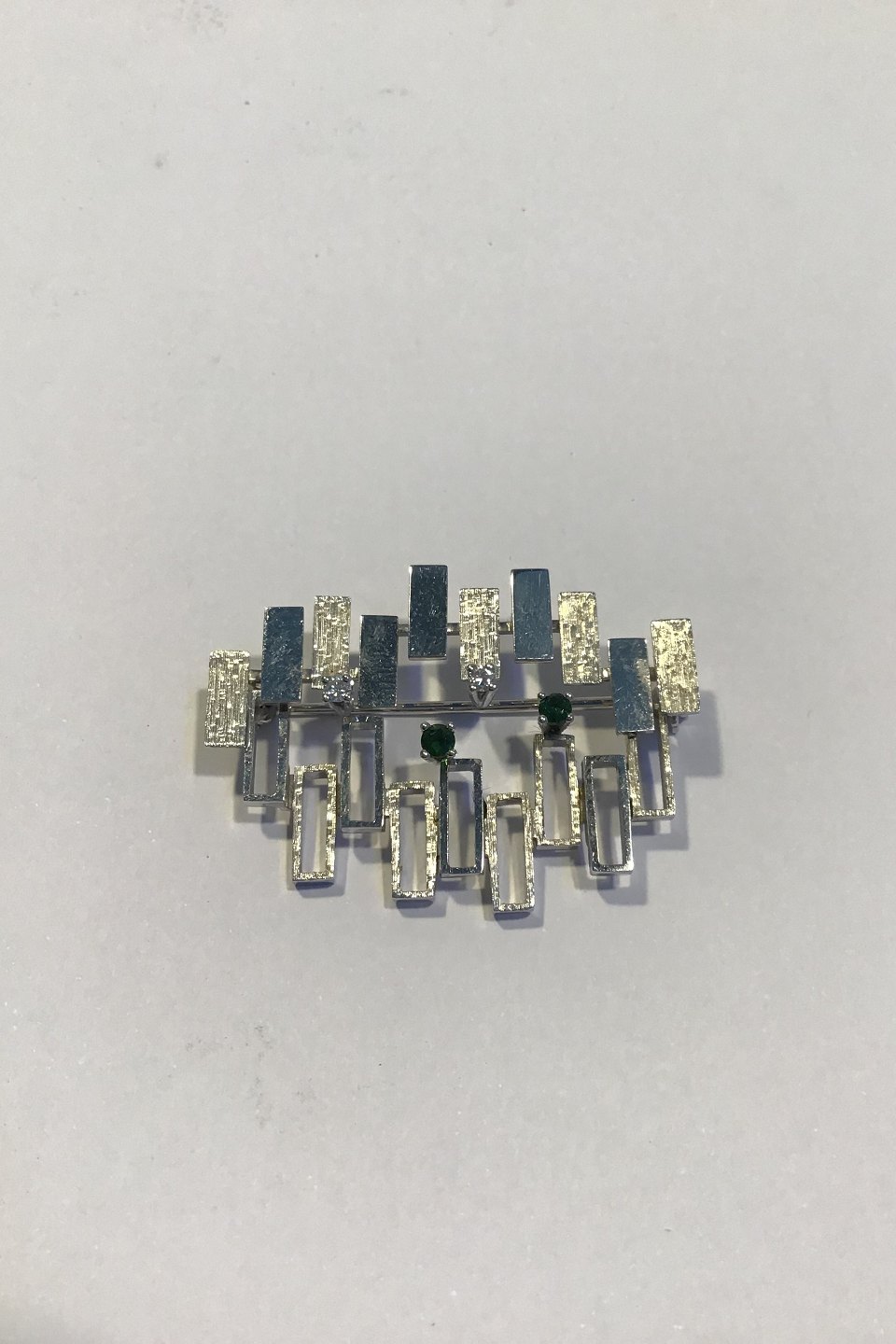 Hans Hansen 18 ct Whitegold Brooch w/ Tourmaline and Diamond