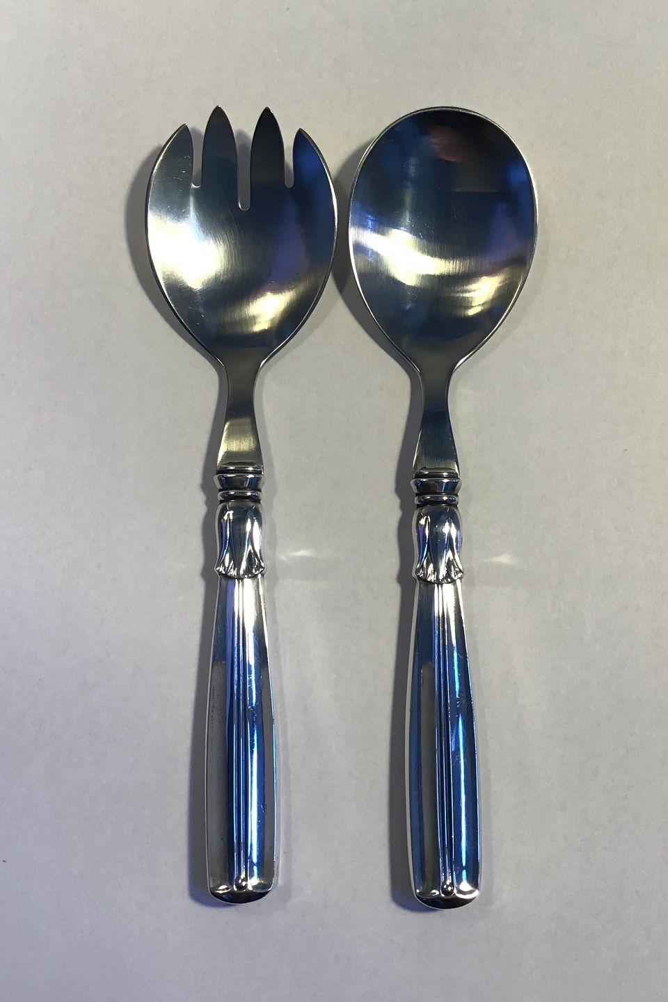 Description: Lotus Silver/Steel Salad Serving Set W. & S. Sørensen