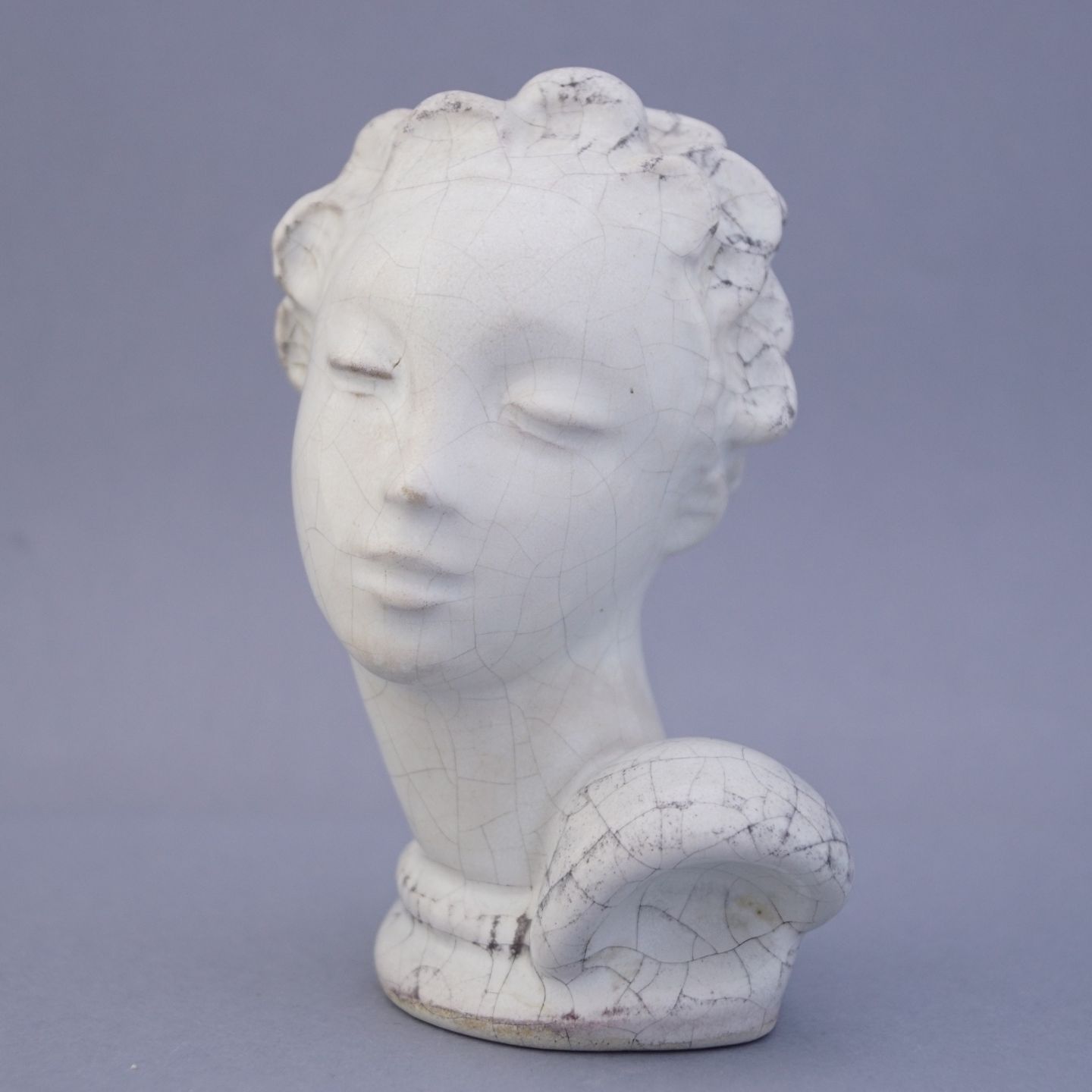 Description: Michael Andersen; A figurine, a womans head, made of ceramic.