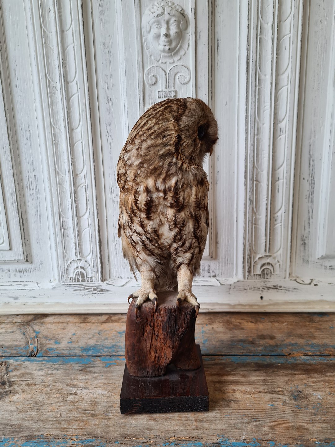 Beskrivelse: Flot udstoppet Natugle monteret på natur gren.